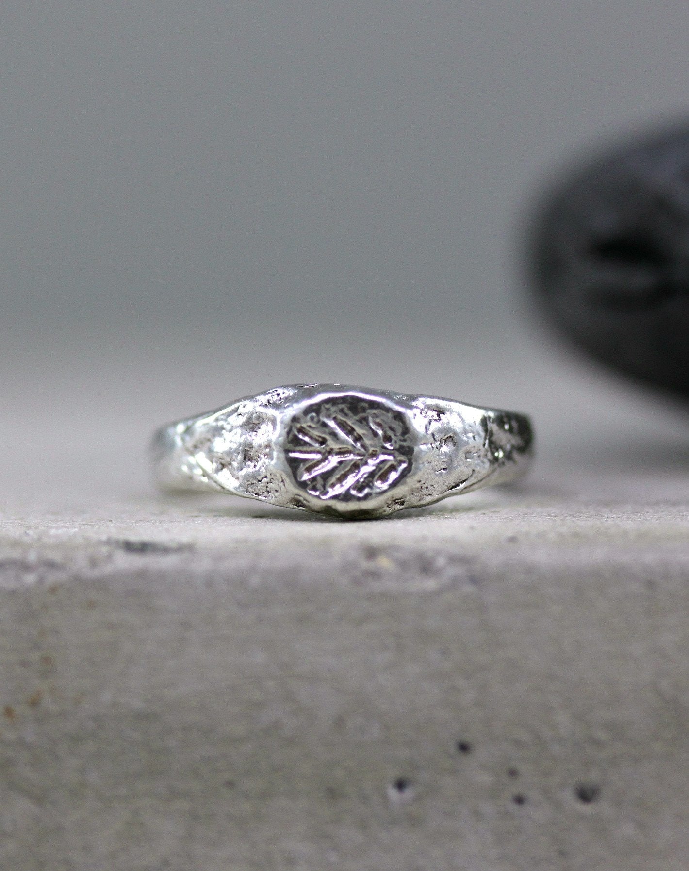 Laurel's ring was made from the mold of an original Roman Era ring. The original ring that Laurel's ring was molded from, dates between the 3rd and 5th centuries AD, and was found in metal detecting in Germany. This ring has a beautiful laurel branch carved into the top which gives this ring its name. We cast Laurel's Ring in either sterling silver or 14K white, yellow, or rose gold.